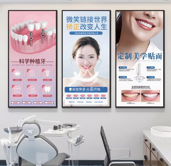口腔诊所墙面装饰挂画牙科诊室文化墙牙齿种植矫正宣传广告海报图